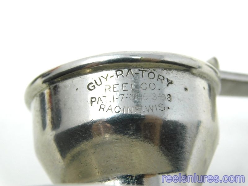 The Guy-Ra-Tory Reel Co. used the 1908 patent by Henry Crandall to make this unusual reel around 1917. Line is wound with its gyratory motion.