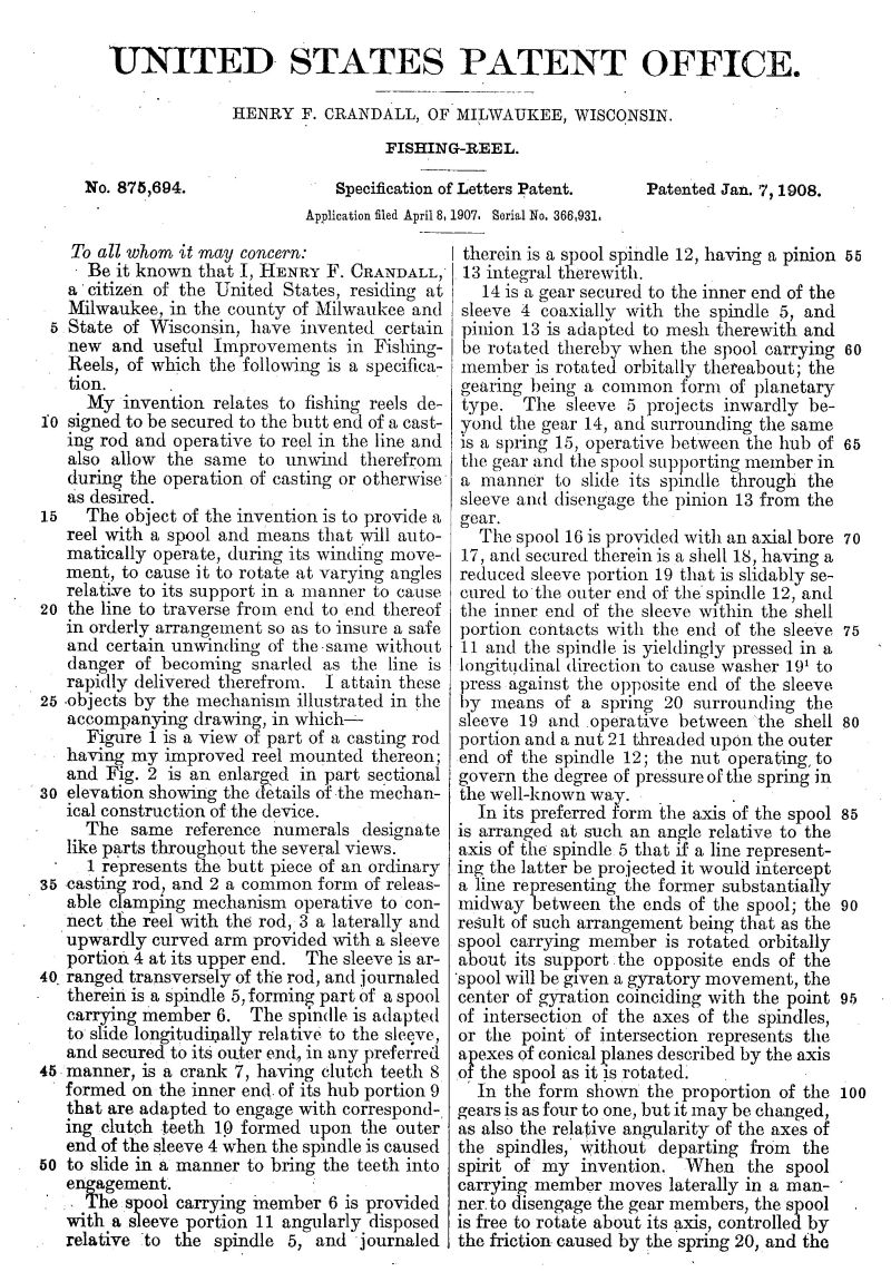 The 1908 Guy-Ra-Tory Reel Patent by Henry Crandall