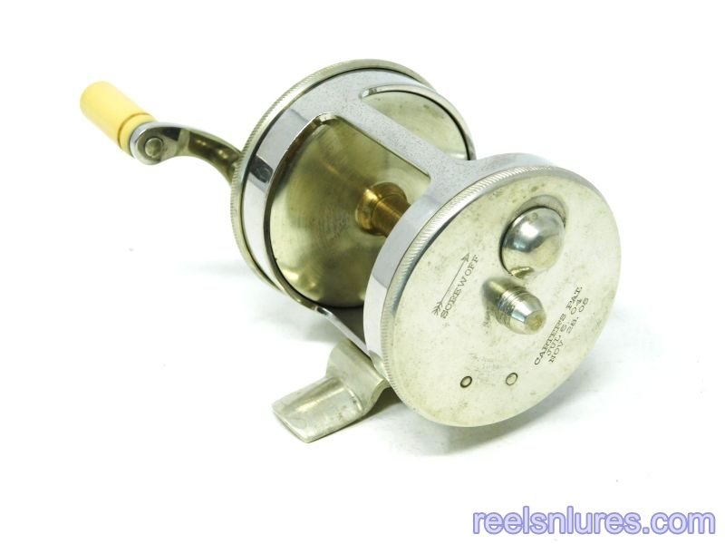 James Heddon’s Sons reels were made starting in 1917. They hired William Carter to develop a line of quality reels. Carter had just left B.F. Meek & Sons. In 1917, they introduced their first Carter-built reels. They were the No.’s 30, 35, 40 and 45. They were available for only a couple of years. The No. 30 was the most costly and is scarce. In 1920, the Heddon 3-15, 3-24 an 3-30 models were introduced. The top of the line variations of the 3-24 and 3-30 were the full jeweled tournament (FJT) models with sapphire jeweled bearings and aluminum spools. On November 11, 1919, Carter received a reel patent that incorporated an improved click design that was used on his July 5, 1904 patent design while at B.F. Meek & Sons.